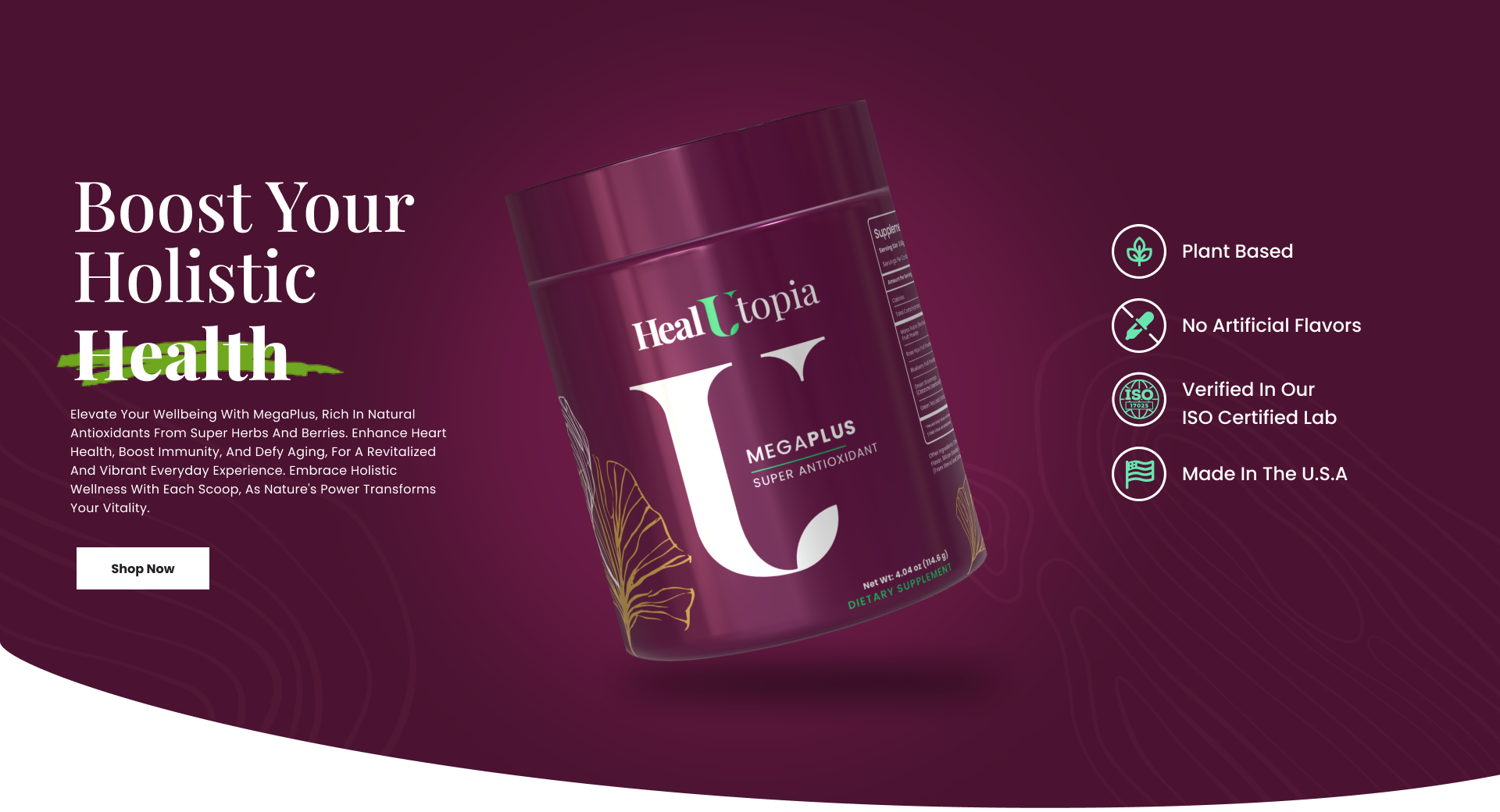 حقق التوازن والعافية باستخدام الحلول الطبيعية. في Healutopia، نحن ملتزمون بتسخير فعالية الأعشاب الطبيعية، والتي تم التحقق من صحتها علميًا واختبارها بدقة من أجل النقاء. إن مجموعتنا من المنتجات العضوية الطبيعية لا تعزز نمط حياة أكثر صحة فحسب، بل تساهم أيضًا في خلق كوكب أكثر سعادة. انضم إلينا في تبني الوعي الصحي والبيئي من خلال عروضنا التي تركز على الصحة.